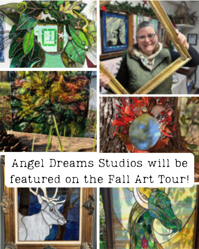 I’m the artist behind Angel Dreams Studios. I am passionate about stained glass artwork, and I’m always working on something, whether it’s a custom piece or a personal project. I love to share my love for art through teaching and fostering a space to make art together. Let’s create something beautiful!